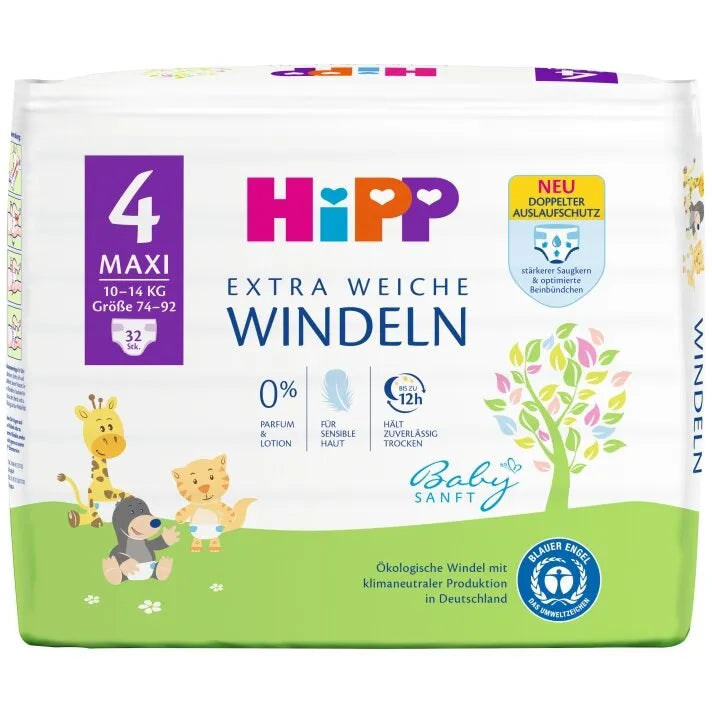 The extra soft diapers from HiPP are available in sizes 1-6. In order to keep them reliably dry, it is particularly important that the diaper is the right size. In order to make your choice easier, we also give you the size of your clothing as a guide in addition to the weight.