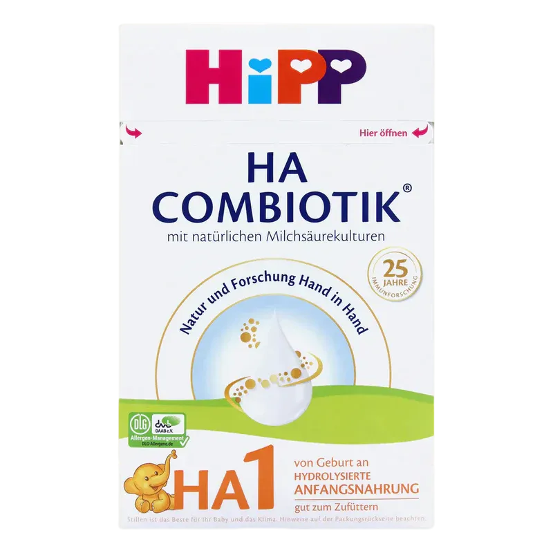 HiPP HA1 Hypoallergenic Formula is specifically designed for infants from birth who may have milk protein sensitivity, a common factor triggering allergies. This formula features hydrolyzed proteins that are broken down into simple molecules to reduce the risk of allergic reactions.