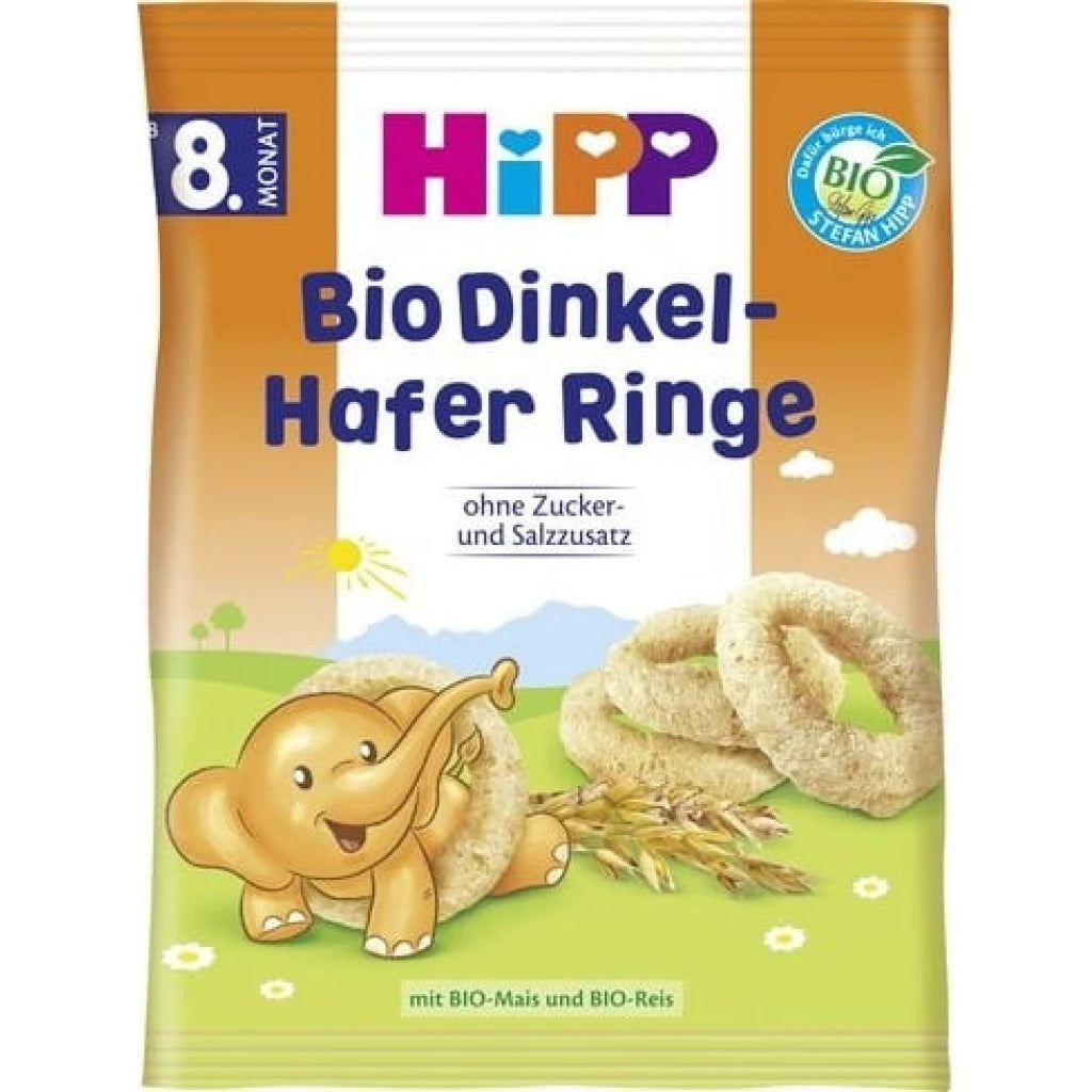 The Spelt & Oat Rings are an ideal snack for babies starting at 8 months of age. They are made with puffed organic spelt, organic oats, organic corn and organic rice. The light and airy texture quickly dissolves in the mouth. The rings are easy for your baby to hold – a great way to encourage your little one to chew and learn to eat independently.