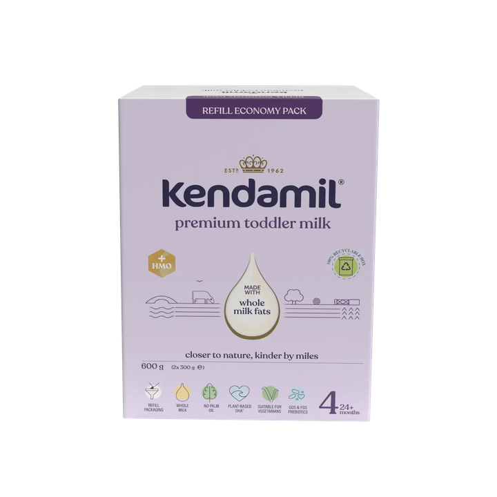 Important note: Breastfeeding is the best way to feed your baby. KENDAMIL PREMIUM 4 HMO+ is intended for the nutrition of young children from the 24th month onwards and should only form part of a mixed and balanced diet of a young child. When feeding from a bottle, avoid unnecessarily prolonging the contact of the teat with the teeth, thereby increasing the risk of tooth decay. Take care of your child’s oral hygiene, especially before going to bed. Follow the instructions for preparation, feeding and storage, otherwise you will endanger the health of the baby. Not intended for children under 12 months.